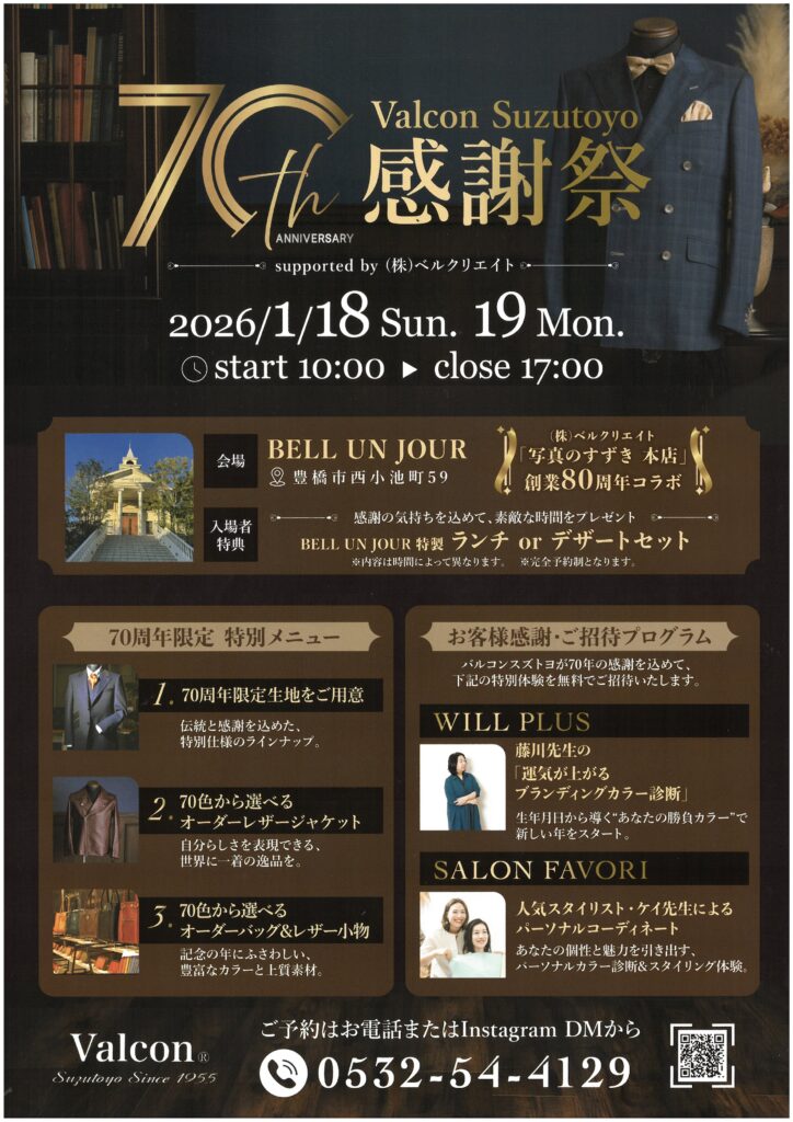 創業70周年感謝祭(2026年1月18・19日)を開催いたします。